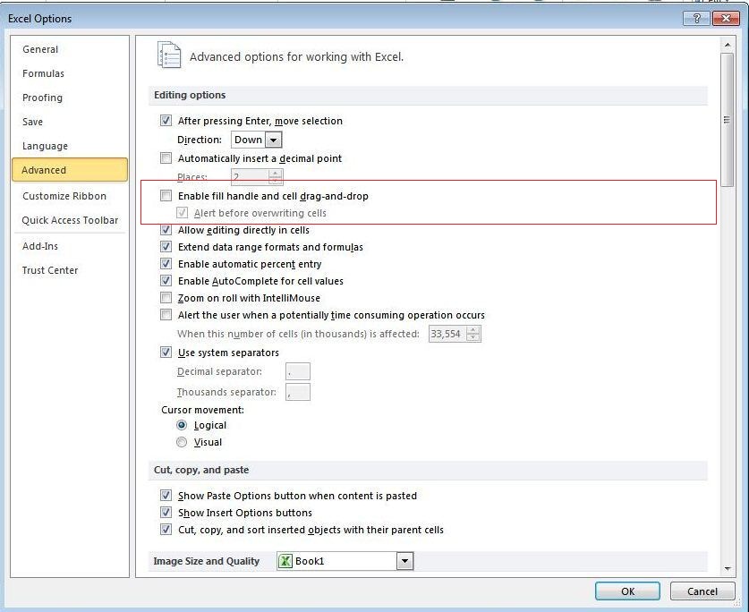 Enable fill handle and cell drag-and-drop: Ensure the box is checked.